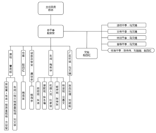 為確保相關(guān)工作順利推進(jìn),公司組建成立了“5S推行委員會(huì)”,下設(shè)干事局,負(fù)責(zé)行動(dòng)的組織協(xié)調(diào)、執(zhí)行和宣傳督導(dǎo)工作。為明確職責(zé)分工,除了健峰老師現(xiàn)場(chǎng)輔導(dǎo)外,推行委員會(huì)通過召開“5S”動(dòng)員會(huì)、組建“5S”工作交流群、制作并下發(fā)了“5S”宣傳手冊(cè)、征集了“5S”活動(dòng)標(biāo)語,傳達(dá)貫徹了公司致力于提升整體廠容廠貌和精益現(xiàn)場(chǎng)要求的有關(guān)精神,對(duì)實(shí)施精益現(xiàn)場(chǎng)管理行動(dòng)進(jìn)行了全面動(dòng)員和詳細(xì)部署,加深了員工對(duì)“5S”工作的理解認(rèn)識(shí),促進(jìn)了關(guān)于做好“5S”工作經(jīng)驗(yàn)做法的學(xué)習(xí)交流。